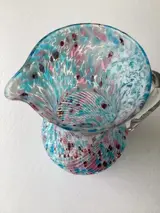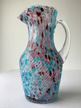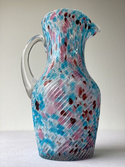 Prachtige grote Art Nouveau schenkkan , met mooie intens kleurig gemouchteerd kleurenspel.