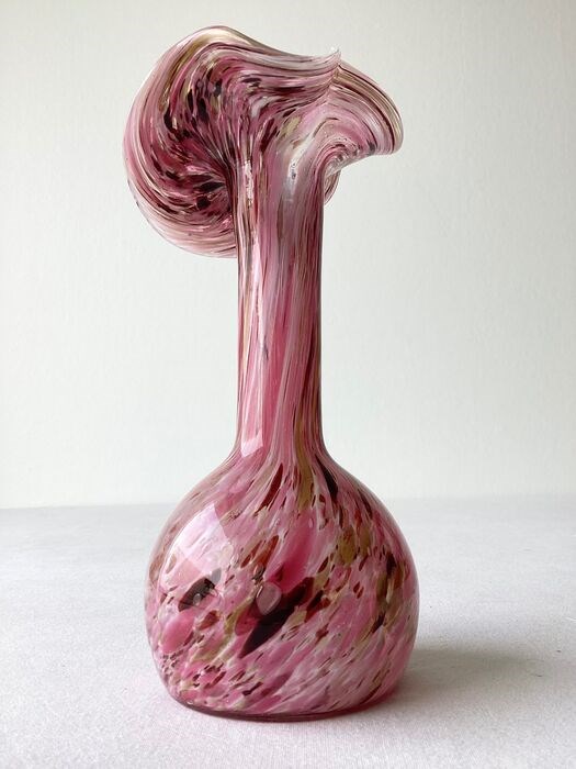 Prachtige Art Nouveau Soliflor vaas met mooie gemouchteerd intens kleurenspel en discreet beneveld met goudpoeder.