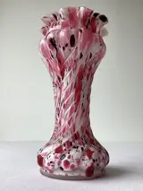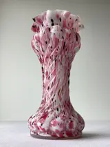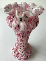 Prachtige Art Nouveau vaas met mooie intens roos , wit en bordeaux gemouchteerd kleurenspel.