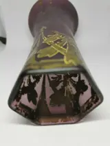 Ongesigneerde oude legras vaas in goede staat afgezien van wat gebrek aan vergulding op sommige plaatsen is de vaas niet bekrast of gebarsten.