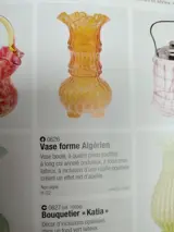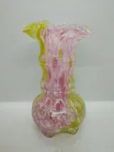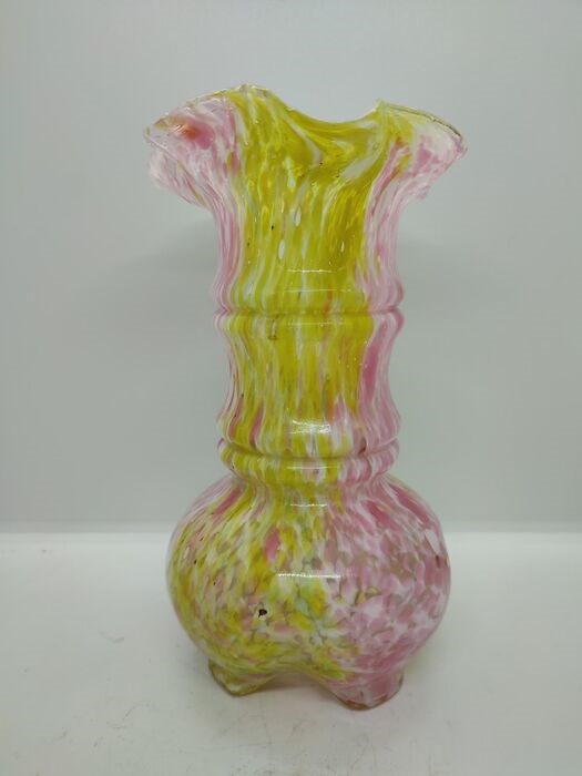 Mooie bolvaas op voetademhaling genaamd Algerijnse vorm geel en gespikkeld roze kleurhoogte ongeveer 21,5 cm