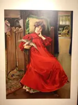 Gegarandeerd originele grote art nouveau chromolithografie van Fernand Toussaint. Een elegante dame in een felrode jurk die een vogel vasthoudt. Toussaint was een vooraanstaand Belgisch schilder en graficus. Zijn posters zijn waardevol en gewild, Le Sillon is een van zijn beste (zie laatste afbeelding, maakt geen deel uit van deze veiling. Uitstekende afdrukkwaliteit, staat is redelijk met scheuren, vlekken en wat ontbrekend papier aan de bovenkant. De centrale afbeelding is zeer goed. Gedrukt op stevig papier.