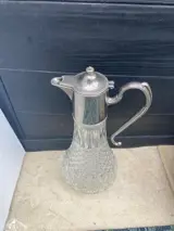 Zeer mooie antiek verzilverde glazen art nouveau karaf.