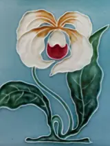 Art Nouveau tegel (15,2 x 15,2 cm) met daarop een bloem gemaakt bij Georg Schmider, Zell am Hamersbach in Duitsland.