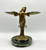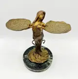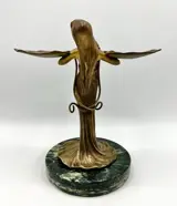 Kostbaar beeldhouwwerk van een nimf en art nouveau-periode in bronzen en groenmarmeren voet. Werk van de beeldhouwer Georges Flamand en productie ca.30s.