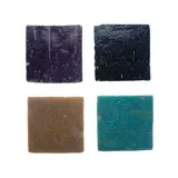 Deze tegels zijn tijdens de renovatie uit de kelder gesloopt en gered uit de container. Het zijn de kleuren Paars, Zandgeel, Zwart en Blauw. De tegels meten 5x5cm per stuk.
