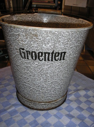 Grijs gewolkt emaille, vergiet / emmer