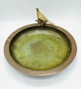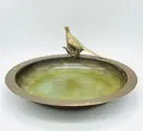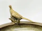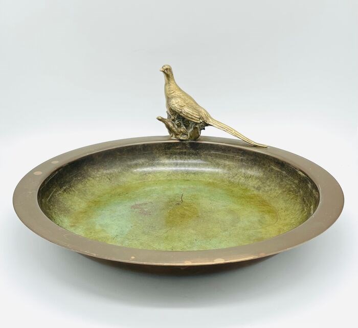Een grote en fijne Deens groen gepatineerde art deco bronzen schaal verfraaid met een verguld bronzen fazant op de rand
