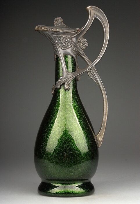 Een grote Art Nouveau karaf. Glasfabriek - Legras & Cie. Herkomst: Frankrijk, begin 20e eeuw Zeer goede staat, zichtbare slijtage van de verzilvering en gebruikssporen.
