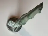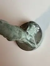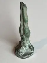 In metaallegering gegoten art deco beeldje (daterend begin 20e eeuw) van naakt met groen aangebracht patina, van beeldhouwer Gustav Adolf Daumiller (1876-1962).