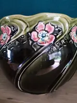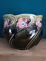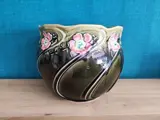 Grote plantenpot gedecoreerd met wilde roos in slip.