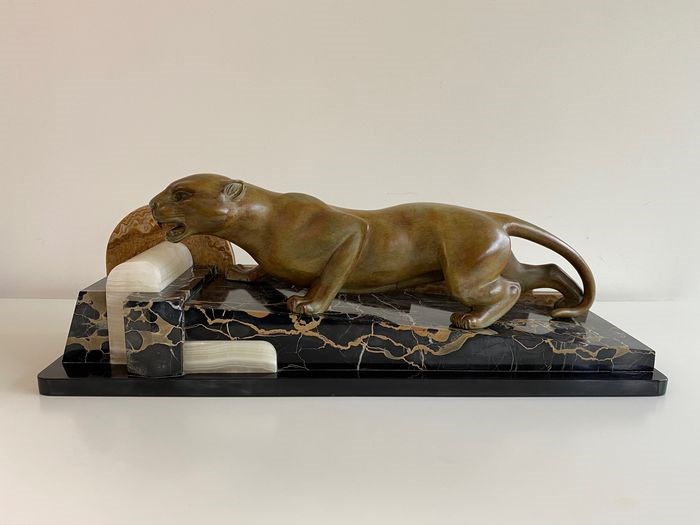 Monumentaal Art Deco beeld van een sluipende panter.