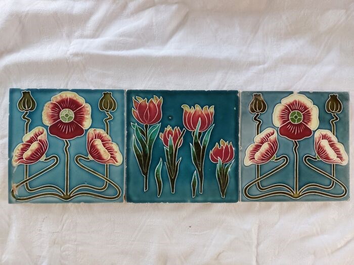 De tegel met de tulpen is een ontwerp van Hans Cristiansen gemaakt voor Düsseldorfer Tonwerk. De beide anderen zijn eveneens gemaakt door D.T.-AG