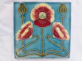 Jugendstil Art Nouveau tegel met daarop bloemen gemaakt door NSTG te Grohn in Duitsland.