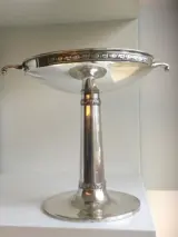 Zeer grote massief zilveren Tazza, Oostenrijk/ Hongarije, met vele keuren. Diana hoofd, 800 zilver,Gemerkt met letter A ( Wenen). Deze Tazza is rond 1900 vervaardigd. Kenmerken van Art-Nouveau. Met fraaie randen, versieringen.Met import merk.
