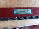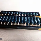 foto 1 -2- 3, - mooi houten chinees telraam, oftewel abacus. Het betreft een exemplaar van goede kwaliteit, fraai afgewerkt met koperen beslag. Het chinese telraam is een al oude manier van rekenen met een hulpmiddel. Het telraam bestaat uit een houten frame met staafjes waarover de schijfjes verschuiven. De chinese versie heeft 5 onderkralen en 2 bovenkralen. Een abacus (meervoud: abaci), ook telraam of rekenrek genoemd, is een mechanisme met kralen die afhankelijk van het type abacus, heen en weer geschoven kunnen worden in horizontale of verticale richting, om sommen en andere wiskundige berekeningen mee uit te voeren. Het is een voorloper van de rekenmachine en de computer. In de westerse wereld wordt de abacus tegenwoordig hoofdzakelijk gebruikt als didactisch hulpmiddel bij het leren rekenen. Met name in het verre oosten wordt hij nog wel gebruikt in winkels en dergelijke. - 16,50