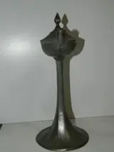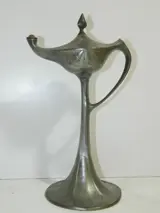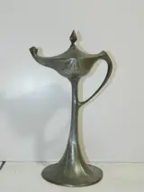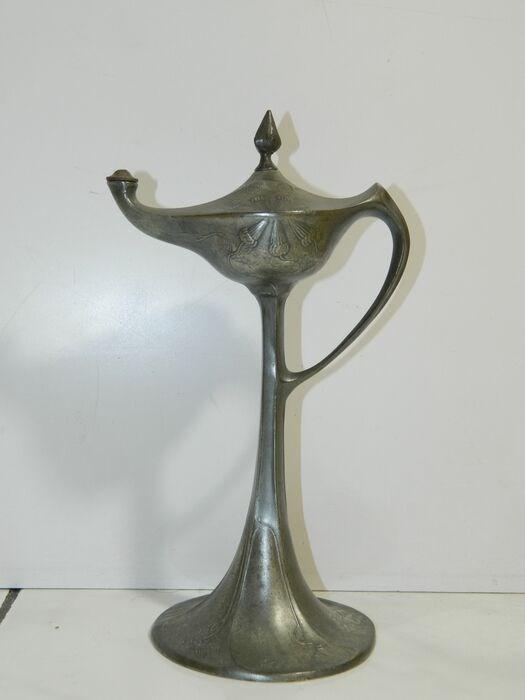 Kayserzinn olielamp, ontwerper Hugo Leven, Duitse Art Nouveau in mooie staat, modelnr. 4439