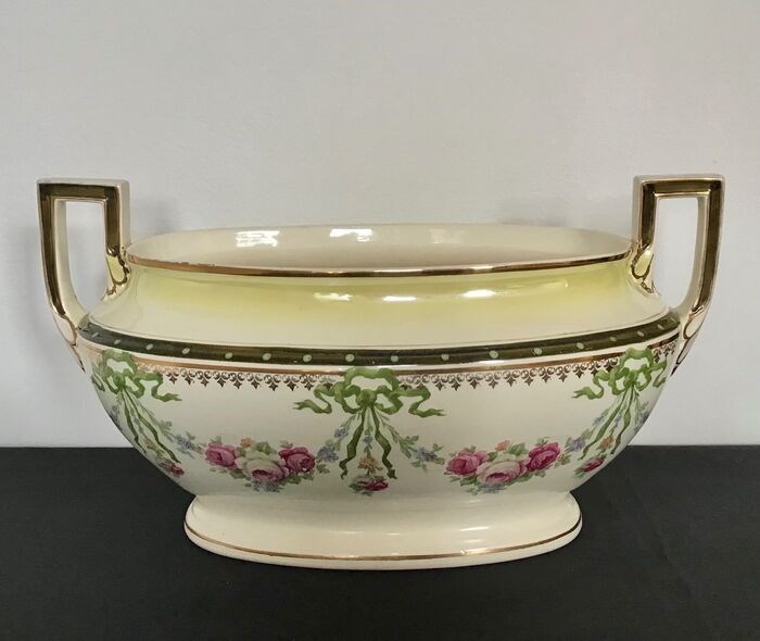 Een mooie Franse Art Deco jardinière met decoratie van