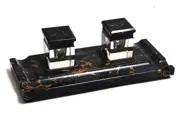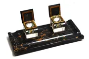 Art Deco marmeren inktstel met twee glazen inktpotjes. Frankrijk, jaren 20.