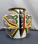 Fleurige keramieken vaas met prachtig decor in reliëf.