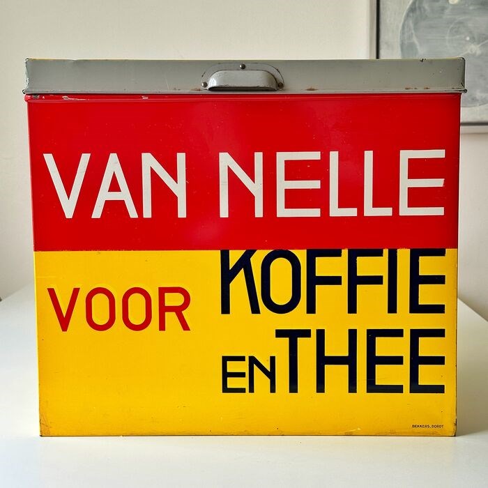 Dit beroemde blik is ontworpen door Jac. Jongert en uitgevoerd bij de firma (wed) Bekkers Dordt. Bekkers maakte vanaf 1935 deel uit van Verblifa, die deze blikken in het begin produceerden. De productie is voor een klein deel dus ook bij Bekkers Dordt ondergebracht, wat niet zo heel bekend is. Bekkers verdween, als naam, in 1964. Dit blik is dus daarvoor vervaardigd en is één van de laatste blikken die echt als winkelblik hebben gediend. De gehele geschiedenis, als ook de echt zeer goede staat (zie foto’s) en het fameuze ontwerp maken dit blik bijzonder interessant.