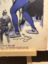 6 Originele lithografische prenten van Jan Sluijters voor het tijdschrift De Nieuwe Amsterdammer. Satirische beelden uit de Eerste Wereldoorlog en gepubliceerd als bijlagen. Slechts aan één zijde bedrukt, achterzijden zijn blanco. Conditie is redelijk met watervlekken, wat kleine papierverlies, scheurtjes aan de korte kant, bruin worden van het papier. Dit zijn originele prints, speciaal gemaakt voor het tijdschrift en niet elders gepubliceerd. Sluijters was een van Nederlands belangrijkste moderne kunstenaars en tijdgenoot van Kees van Dongen, Leo Gestel, Jan Toorop, Willy Sluiter en Piet van der Hem.