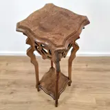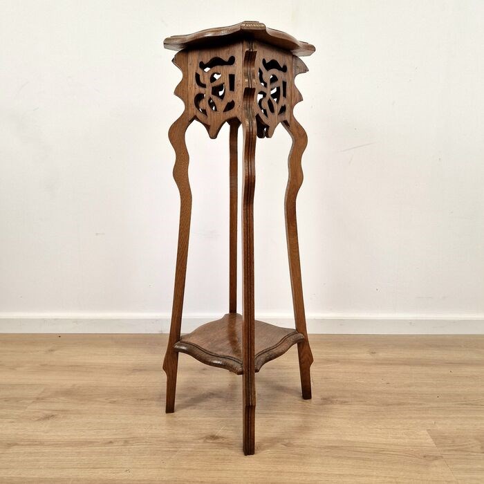 Decoratief, organisch gevormde bijzettafel in Jugendstil. Gemaakt van massief eikenhout en verkeert in een zeer goede staat. Datering begin 20e eeuw.