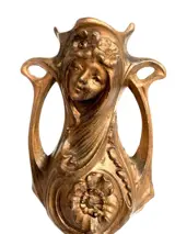 Art Nouveau metaal vergulde vaas, laat 19e eeuw, Frankrijk.