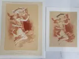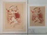2°) Bloedgravure - sanguine,gelamineerd op doek
