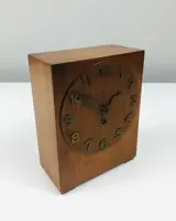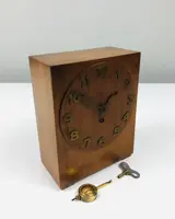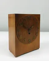 Tafelklok in Amsterdamse School en Art Deco stijl. Het geheel is gemaakt van eikenhout en de wijzers en getallen zijn gemaakt van messing. Aan de binnenkant is het gelabeld met het merk Junghans. Met de slinger aanwezig en de opwindsleutel aanwezig. In geheel werkende staat.