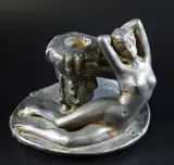 Art Nouveau kandelaar met een naakte vrouw, gesigneerd "Jouant" (Auguste Jules Alphonse Jouant, *19.06.1863 in Parijs, overleden 1921).