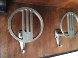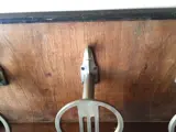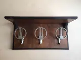 Vintage hoedenhanger, Italiaans uit het begin van de eeuw. Zeer charmant en zeer onderscheidend Art Deco van zijn tijd. Eenvoudig en elegant. Strakke lijnen en periode belangrijke materialen. Het hecht aan de muur vanaf twee punten erachter. Het heeft drie dubbele haken en een hoedenplank (zie laatste foto). De hoed is niet bij de kavel van deze veiling inbegrepen.