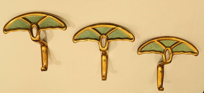 Schitterende set wandkleerhangers uit de jaren 30/40 van Italiaanse makelij in één gietblok.
