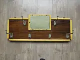 De kapstok met crèmekleurige accenten heeft 6 haken met in totaal 10 ophangmogelijkheden en een spiegel. Het geheel is in een redelijke, originele, gebruikte maar bruikbare conditie ( zie detailfoto's )