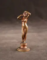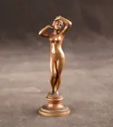 Fraai klein antiek massief bronzen sculptuurtje van een naakte dame.