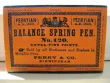 One gross balance spring pen no. 120 extra fine point. Een doosje vol met bronzen kroontjes voor op een kroontjespen.