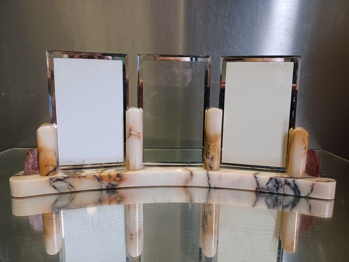 Prachtig grote uitzonderlijk 3-delige gebogen marmeren Art Deco fotohouders / Franse -Art Deco fotolijst - zeer zeldzame Periode: ca. 1920-1940