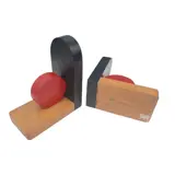 Uiterst zeldzame set berkenhouten De Stijl boekensteunen voor Metz & Co en als zodanig gemerkt. Deze set is in 1931 verkocht bij het beroemde Amsterdamse warenhuis. De ontwerper is officieel niet bekend maar hij werd gepresenteerd in de lijn van Elmar Berkovich, gezien het kleurgebruik en de vormgeving zou ik deze daar ook aan toe durven schrijven.