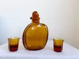 Prachtige art deco Amber kristallen Moser karaf met 2 glazen.
