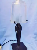 Prachtige en sierlijke Art Deco ijzeren lamp (gesmeed) met Muller/Freres glas.
