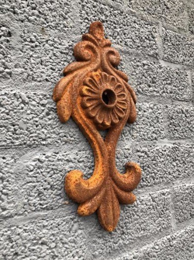 Zo`n anker zorgt voor de verbinding tussen 2 elementen: de eikenbalken die verbonden werden met de muur, met dit mooi ornament. Vroeger werd dit ornament met een houtdraaibout vastgezet in de balk en kwam het ornament aan de buitenkant op de muur.