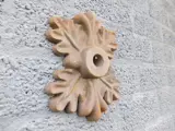 Zo`n anker zorgt voor de verbinding tussen 2 elementen: de eikenbalken die verbonden werden met de muur, met dit mooi ornament. Vroeger werd dit ornament met een houtdraaibout vastgezet in de balk en kwam het ornament aan de buitenkant op de muur.