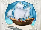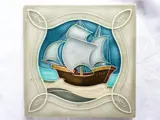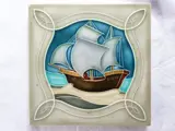 Art Nouveau tegel (15,3 x 15,3 cm) met daarop een bootgemaakt bij NSTG te Grohn in Duitsland.