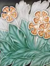 Jugendstil Art Nouveau tegel met daarop bloemen gemaakt door NSTG te Grohn in Duitsland.