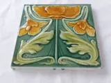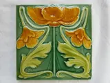 Jugendstil Art Nouveau tegel met daarop bloemen gemaakt door NSTG te Grohn in Duitsland.