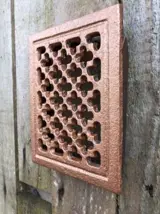 Het rooster is brons-koper geschilderd , en voor een eenvoudige installatie is deze voorzien van zijdelingse klemming platen.