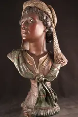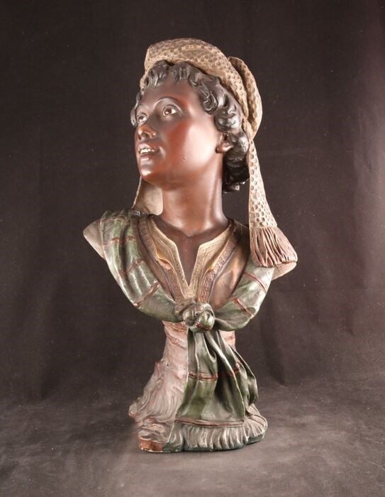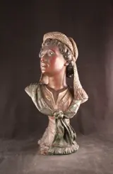 Zeer fraaie grote antieke oriëntalistische buste voorstellende een jongen met hoofddoek.