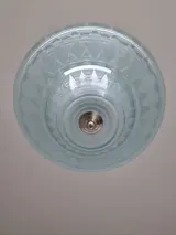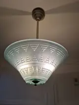 Zeer fraaie lamp, toegeschreven aan Petitot, uitgevoerd in prachtig deco blauwe kleur. Door een speciale techniek zit er optisch diepte in het design.
