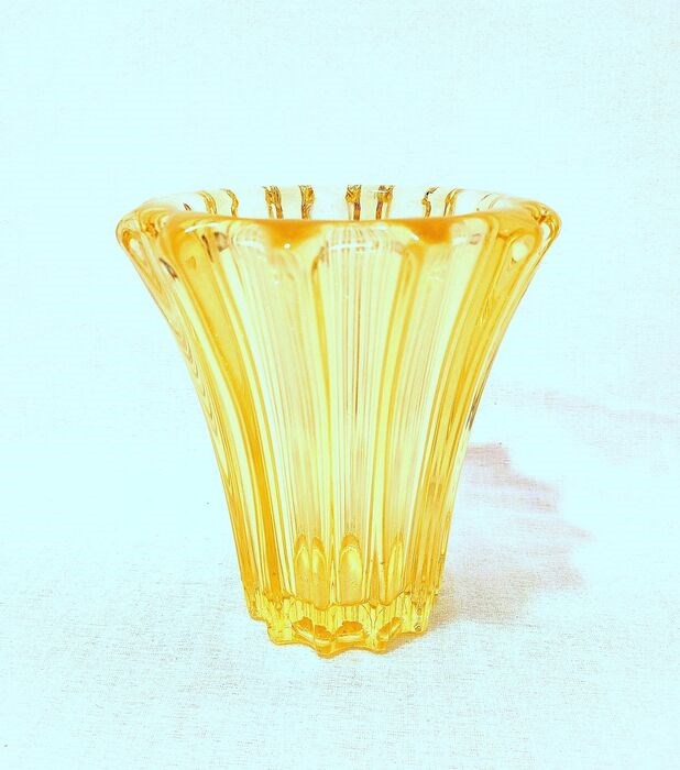 Art-decovaas in ouraline kristal en in de vorm van een bloemkroon, gemaakt door Pierre D'AVESN (1901-1990) voor de DAUM-fabriek in NANCY, model vervaardigd van 1930 tot 1936.