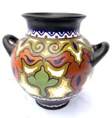 Deze mooie vaas met oren is in 1929 gemaakt bij plateelbakkerij Zuid Holland in Gouda. De hoogte is 22,de diameter is 22 en de halsopening 12 cm. Het object is in uitstekende, onbeschadigde conditie zonder chips, scheuren of reparaties.